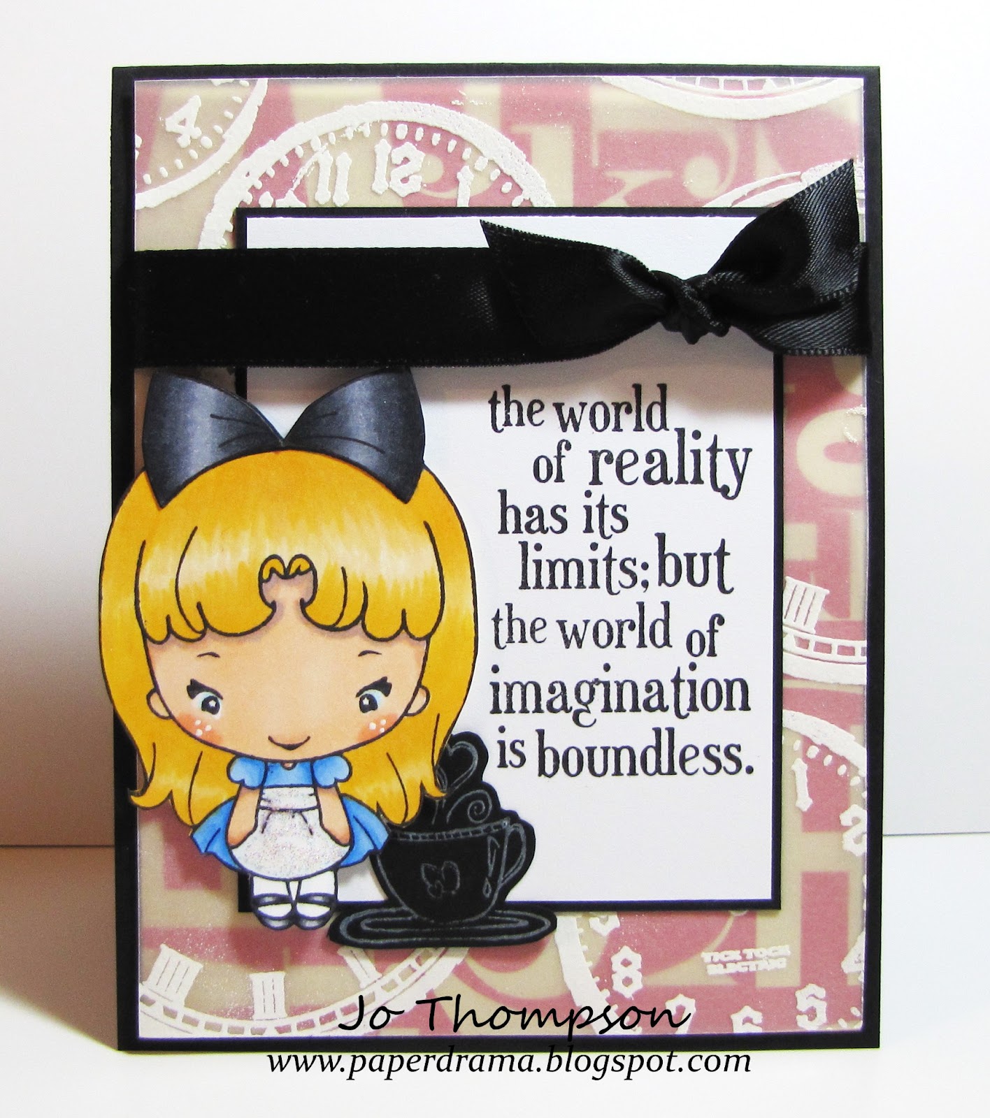 Cuteness! I went for the classic Alice in Wonderland outfit I had to double check what color her bow was. I first colored it blue but then I Googled an image and it was black lol. So i just colored the bow black separately and paper pieced it over the blue bow. That works for me!