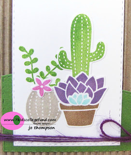 Today's card features this cute stamp set of succulents from Lawn Fawn - Stuck On You. I also use the coordinating Lawn Cuts dies. The base of my card is corrugated cardboard. The white cs was cut by By DIEzyne Dies - Stitched Strips. The green cs was cut by Mama Elephant - Landscape Trio Creative Cuts, and I finished off the edges with By DIEzyne Dies - Big Stitched/Pierced Rectangles.
