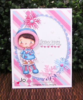 Loved making this card. The adorable penguins are from Avery Elle - Penguin Greetings, but I wonder why the Daddy P is the only one that has clothes? Maybe that's why Mama P is strategically placing Baby P in front of her? LOL Who knows. The coloring is kept simple. The sentiment "Special Delivery" and the candy cane stripes are from Avery Elle - Naughty or Nice. To fill up the space up top, I used the Mama Elephant - Speech Trio die as a base for the sentiment. Lastly, glued on some green sequins, added some faux stitching and a strip of black cs to finish the card.